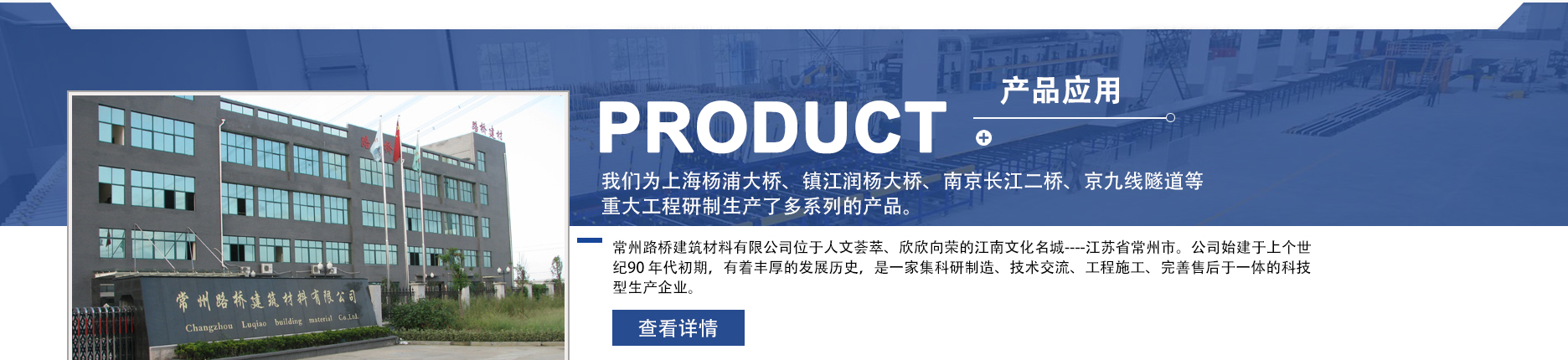 常州路橋建筑材料有限公司位于人文薈萃、欣欣向榮的江南文化名城----江蘇省常州市。公司始建于上個世紀90 年代初期,有著豐厚的發(fā)展歷史,是一家集科研制造、技術交流、工程施工、完善售后于一體的科技型生產(chǎn)企業(yè)。